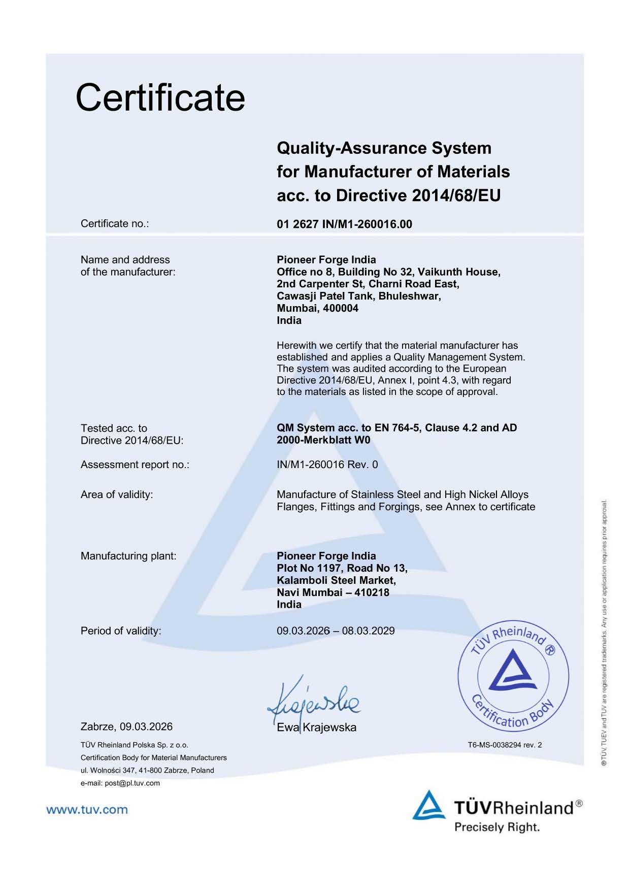Pioneer Forge India takes this opportunity to introduce itself as one of the leading Manufacturers, Exporters, and Stockists of materials such as Flanges and Pipe Fittings. We are an ISO 9001:2015 certified company accredited by QA International Certification (UKAS – London). With over 32 years of experience, we have served industries such as Chemicals & Fertilizers, Marine & Offshore, Engineering & Fabrication, Oil & Petroleum Refineries, Cement, Pulp & Paper, Sugar, Pharmaceuticals, Power, Textiles, and Synthetics, across both Government and Private sectors.
